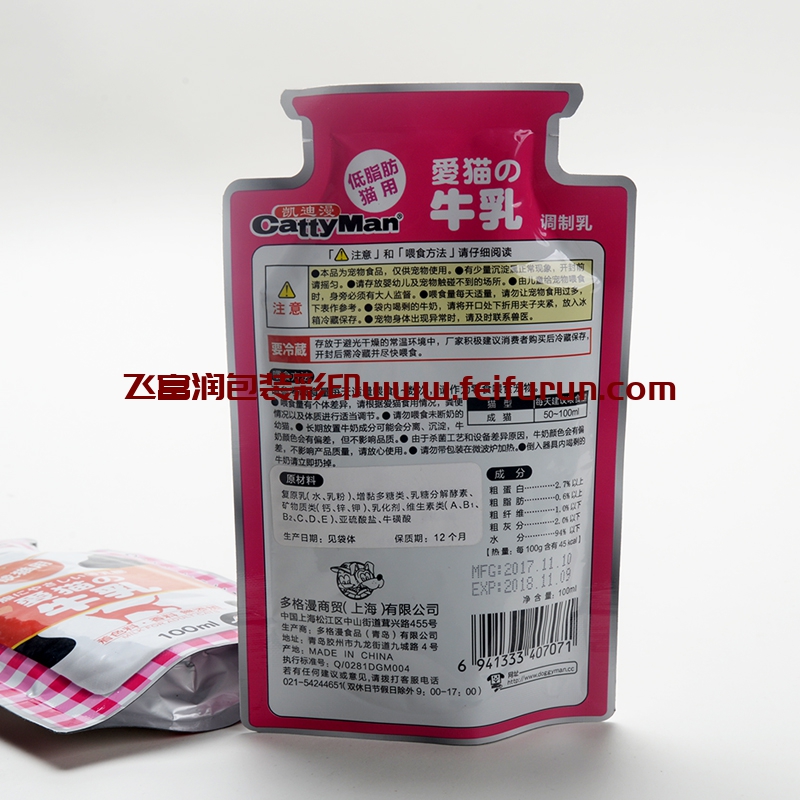 適用范圍:可適用于各種寵物食品(貓糧、狗糧)等包裝