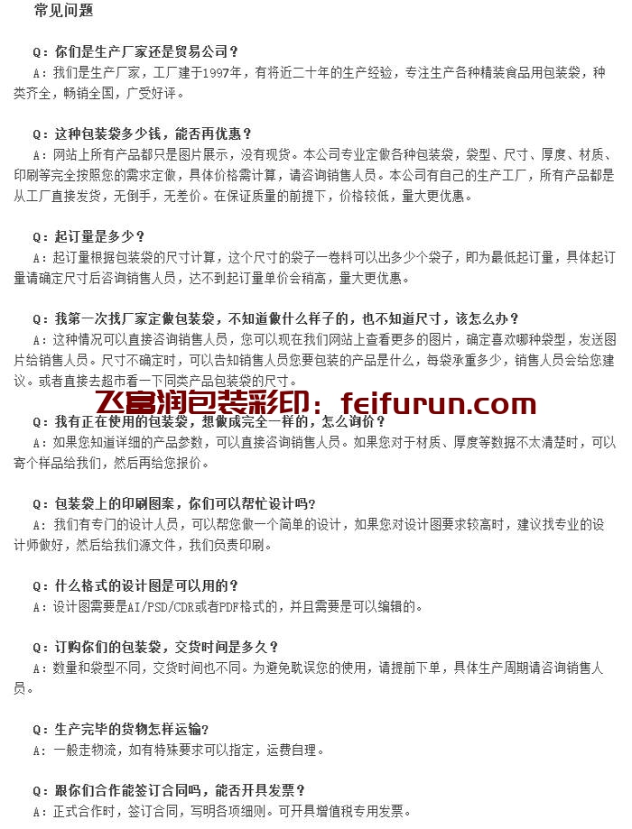 起訂量:據(jù)袋型和尺寸確定,看一卷料所出包裝袋數(shù)量,具體請直接聯(lián)系在線客服